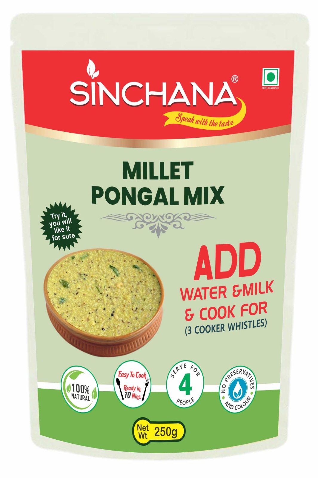 Sinchana’s Ready-to-Cook Millet Pongal Mix (250g) brings you a nutritious twist on the classic South Indian comfort dish — made quick and easy!